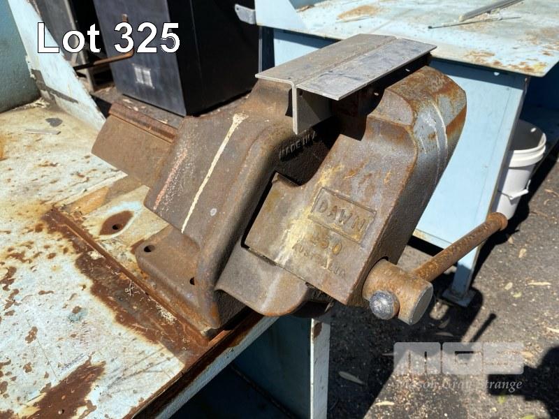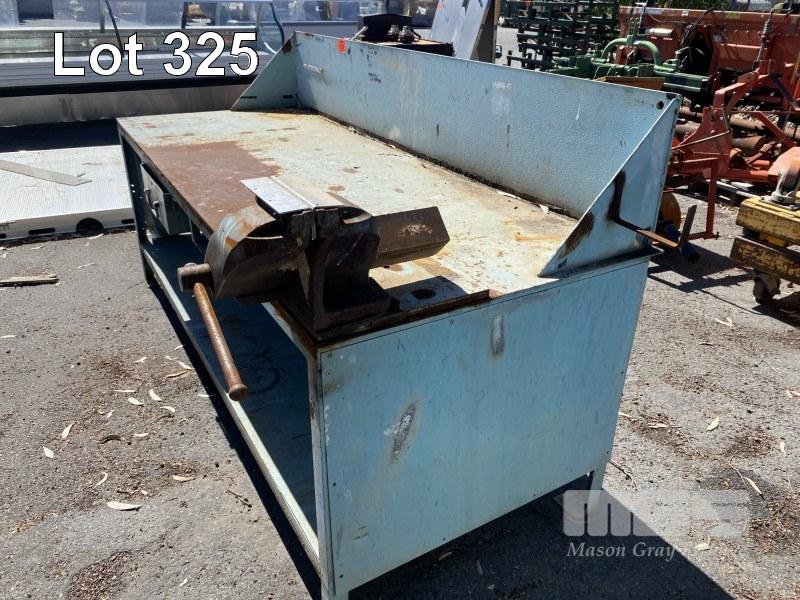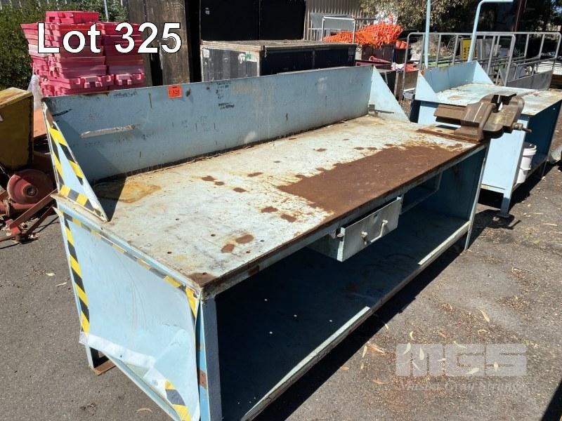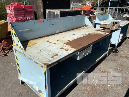 STEEL WORK BENCH, PLATE TOP, 2500 x 950 x 900mm (H) WITH VICE, DAWN OFFSET, 150mm