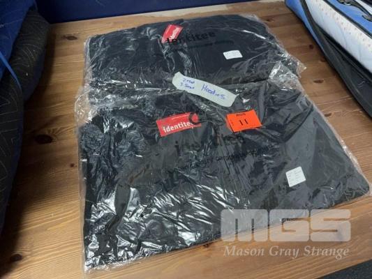 5 x PLAIN BLACK HOODIES, 2 x SMALL, 1 x MEDIUM