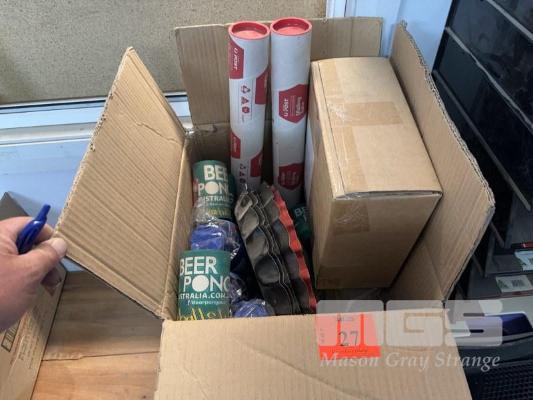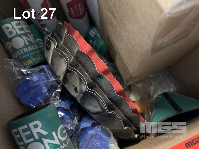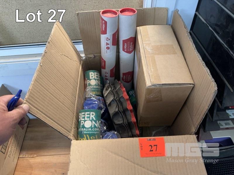 THE PARTY BOX, BEER PONG INFLATABLE TABLE, TRAYS, SUBBIE HOLDERS, CUPS, ETC