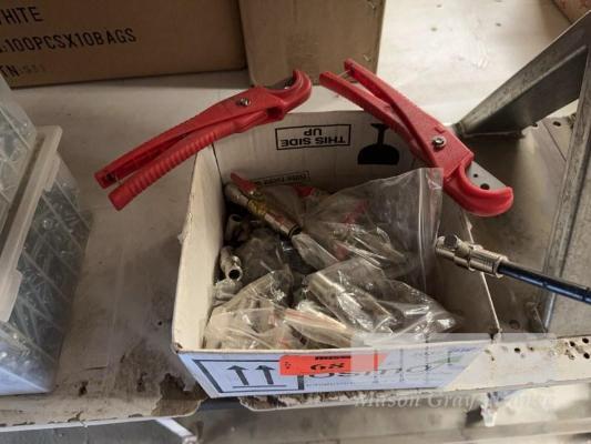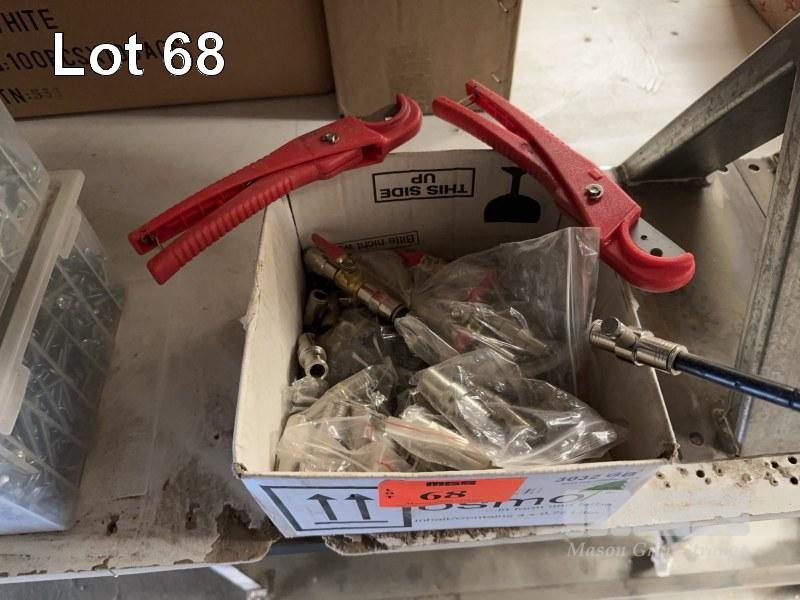 1 x BOX AIR FITTINGS, VALVES, PIPE CUTTERS, ETC