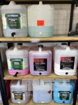 8 x PART & FULL 20 LITRE DRUMS CAR CARE PRODUCTS, WAX & SHINE, ARMOUR TECH, UPHOLSTERY SHAMPOO, ETC CONTENTS 1 BAY