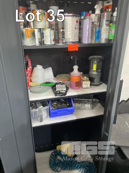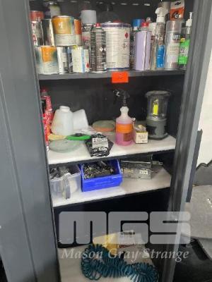 ASSORTED AUTOMOTIVE PAINTS, AEROSOL CLEANERS, AIR COIL LINE & CAR MATS CONTENTS OF CUPBOARD