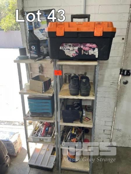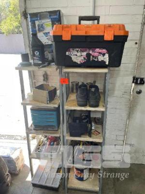 2 x RACKS & CONTENTS, 5 TIER, TOOLS, SPANNERS, SCREWDRIVERS, ETC