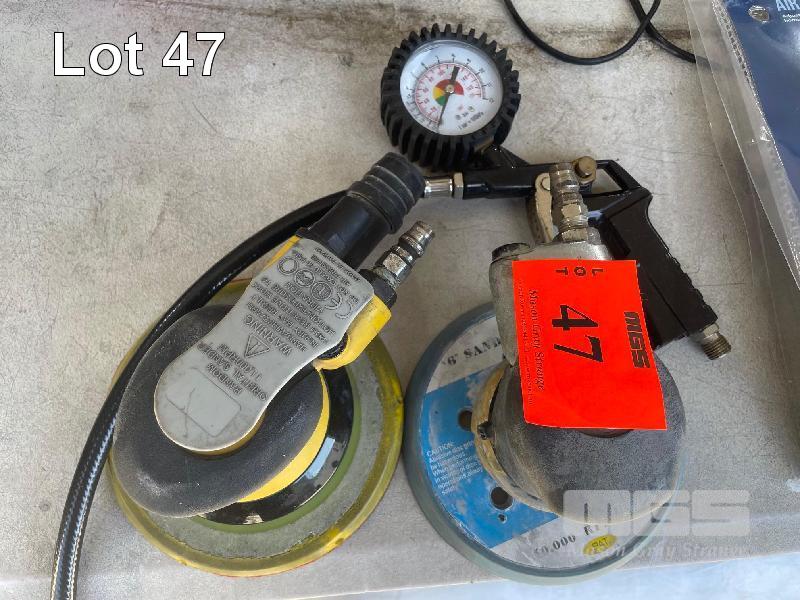 2 x PNEUMATIC ORBITAL SANDERS, 6" (150mm) & TYRE GAUGE
