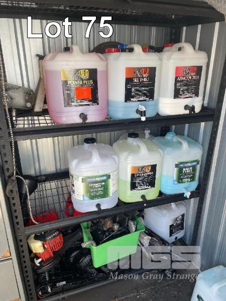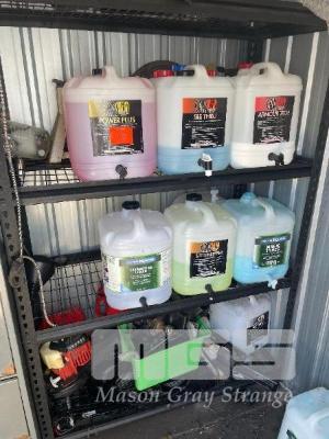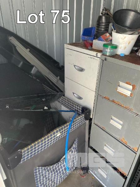 8 x 20 LITRE DRUMS CLEANING PRODUCTS, 2 X 4 DRAWER FILING CABINETS & CONTENTS, TOOLS, ETC