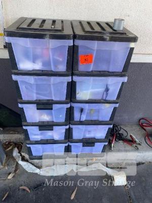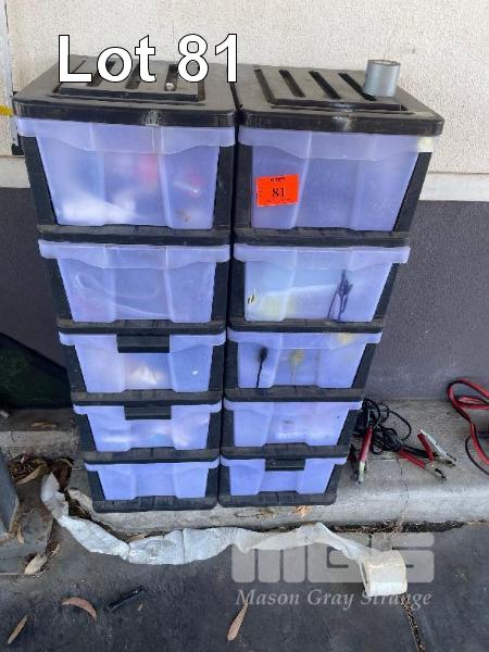 2 x 5 DRAWER STORAGE SETS, 3 x JUMPER LEADS, FIRST AID KIT & CAR CARE PRODUCTS