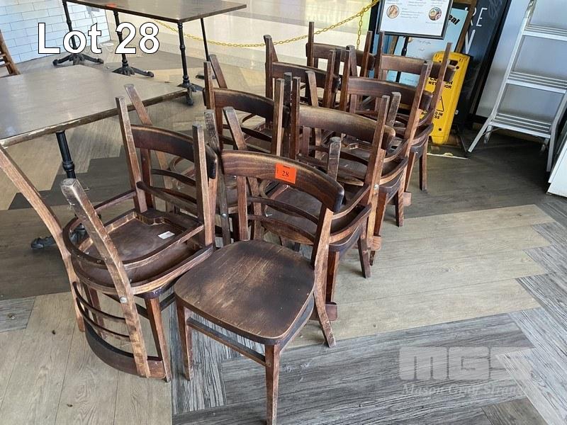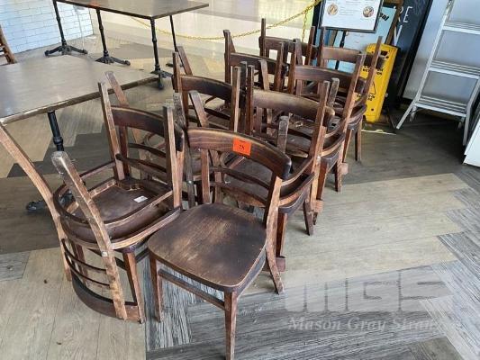 15 x LADDER BACK CAFE CHAIRS, STAINED TIMBER