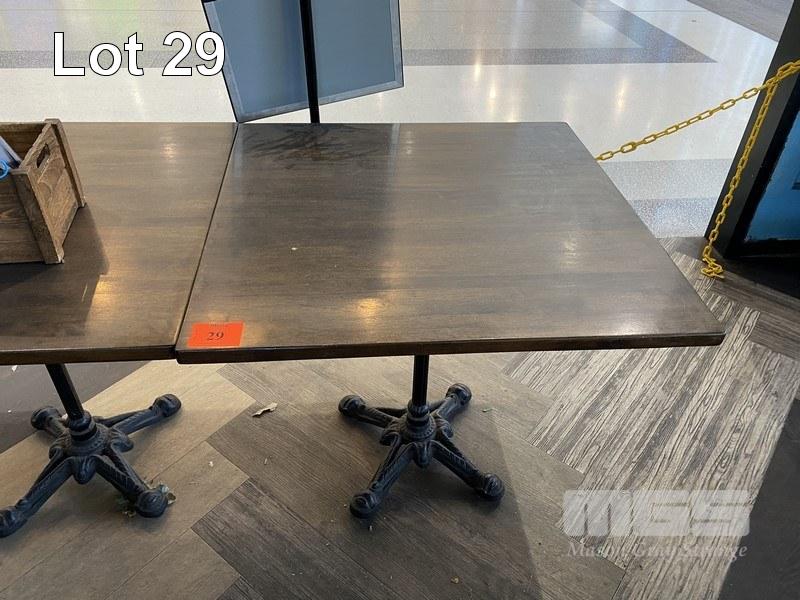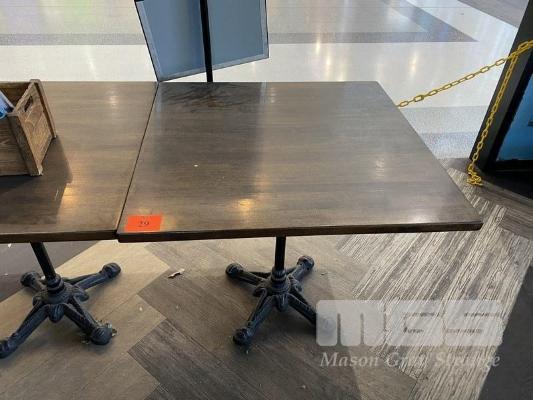 4 x CAFE TABLES, EACH 80 x 80cm, LAMINATE TOP, CAST IRON BASE