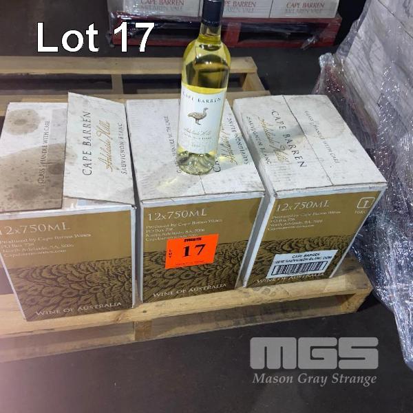 36 x BOTTLES, 2016 CAPE BARREN SAUVIGNON BLANC, 750ML, (3 x 12 PACKS)