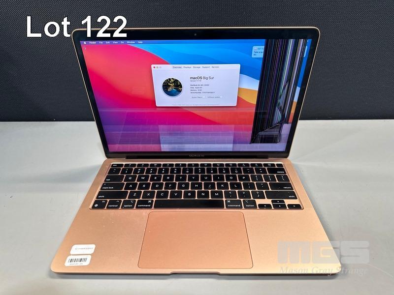 LAPTOP, APPLE MACBOOK AIR (A2337), GOLD, APPLE M1 8 CPU/8 GPU, 8GB RAM, 512GB SSD, 13.3" RETINA DISPLAY (2560x1600), THUNDERBOLT 3, Wi-Fi, BLUETOOTH, MAC OS 11 INSTALLED (NO USB-C POWER SUPPLY) (NOTE: DAMAGED SCREEN, HARDWARE FAULT) S/N:FVFDT08YQ6LD