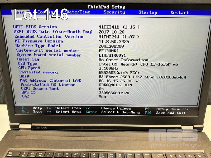 LAPTOP, LENOVO THINKPAD P71 MOBILE WORKSTATION, TYPE 20HL, XEON E3-1535M v6 @ 3.1GHz, 64GB DDR4 RAM, 1TB NVMe M.2 SSD, 1TB SATA HDD, DVD-RW, 17.3" WIDESCREEN (1920x1080), 16GB NVIDIA QUADRO P5000 VIDEO, Wi-Fi, BLUETOOTH, WINDOWS 10 PRO INSTALLED & POWER SUPPLY S/N:PF13UNK4