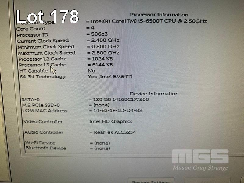 DESKTOP PC, DELL OPTIPLEX 3050 MICRO, CORE i5 6500T (6TH GEN) @ 2.5GHz, 8GB DDR4 RAM, 120GB SSD, INTEL HD VIDEO, 6 x USB, WINDOWS 10 HOME INSTALLED (NO POWER SUPPLY, NO KEYBOARD, NO MOUSE) S/N:8WJT9M2