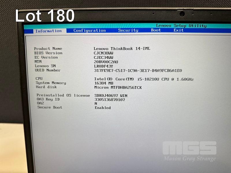 LAPTOP, LENOVO THINKBOOK 14-IML, TYPE 20RV, CORE i5 10210U (10TH GEN) @ 1.6GHz, 16GB RAM, 256GB NVMe M.2 SSD, 14" WIDESCREEN (1920x1080), INTEL UHD GRAPHICS, Wi-Fi, BLUETOOTH, WINDOWS 11 PRO INSTALLED & POWER SUPPLY (NOTE: MARKS ON SCREEN) S/N:LR0DF43Y