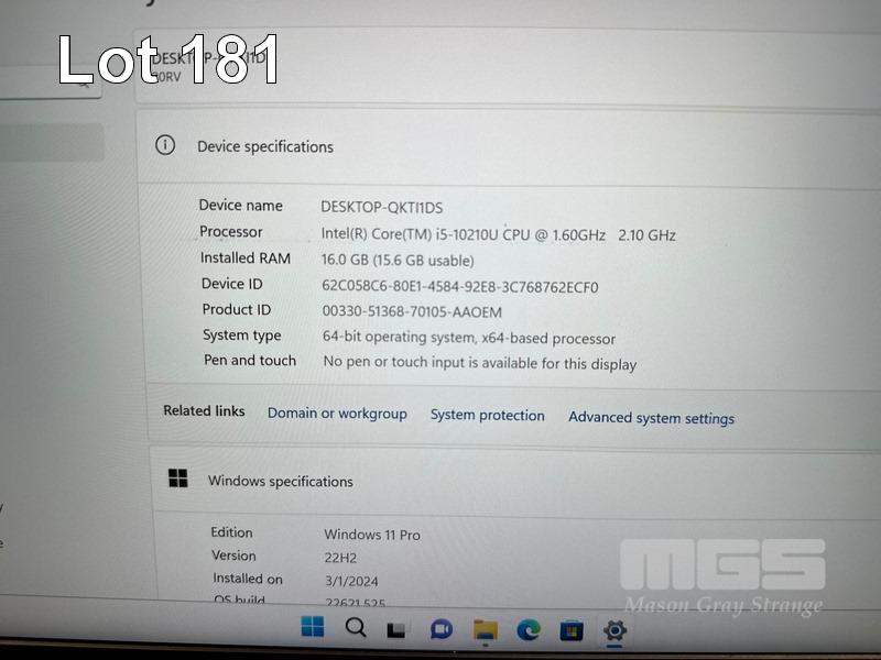 LAPTOP, LENOVO THINKBOOK 14-IML, TYPE 20RV, CORE i5 10210U (10TH GEN) @ 1.6GHz, 16GB RAM, 256GB NVMe M.2 SSD, 14" WIDESCREEN (1920x1080), INTEL UHD GRAPHICS, Wi-Fi, BLUETOOTH, WINDOWS 11 PRO INSTALLED & POWER SUPPLY (NOTE: MARKS ON SCREEN) S/N:LR0DF43W