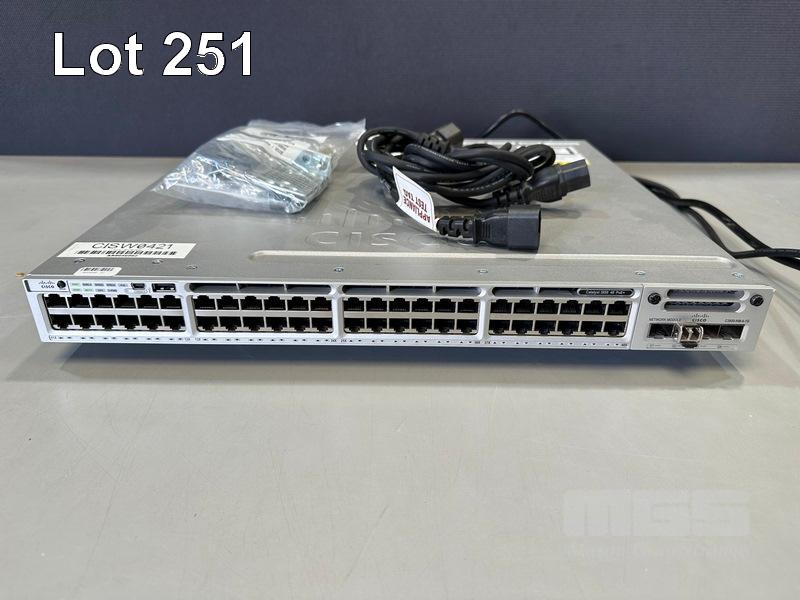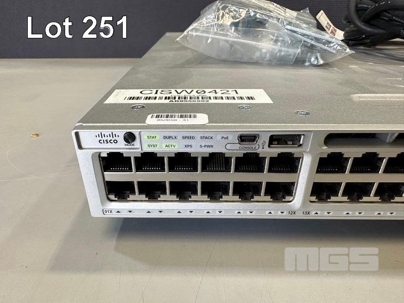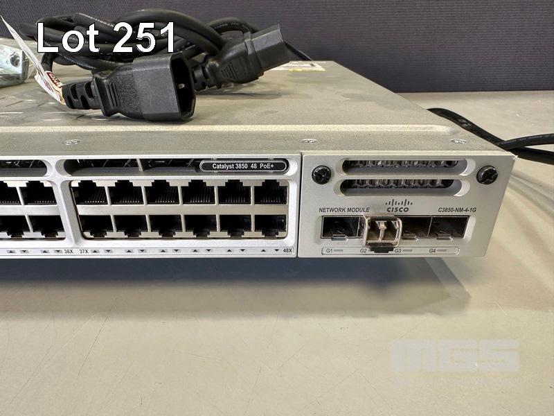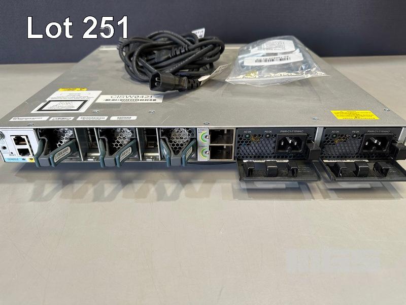 CISCO CATALYST 3850 48 PoE+ 48-PORT SWITCH, WS-C3850-48P-L V06 C3850-NM-4-1G NETWORK MODULE, 2 x PWR-C1-715WAC PSU WITH IEC-C14 TO C15 NOTCH POWER CABLES S/N:FOC1951U18K
