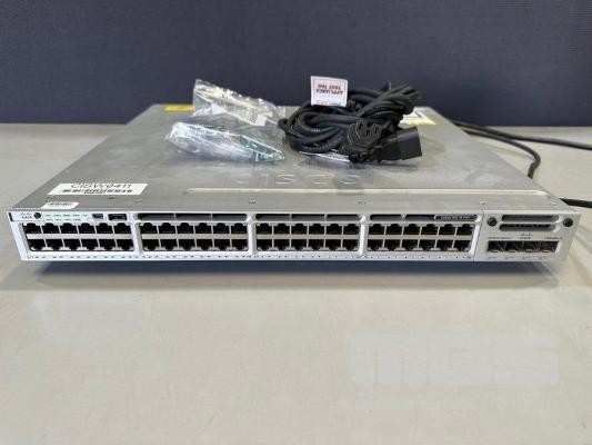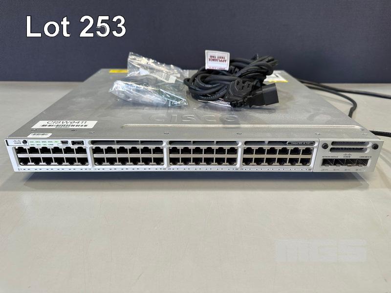 CISCO CATALYST 3850 48 PoE+ 48-PORT SWITCH, WS-C3850-48P-L V06 C3850-NM-4-1G NETWORK MODULE, 2 x PWR-C1-715WAC PSU WITH IEC-C14 TO C15 NOTCH POWER CABLES S/N:FCW1951F10H