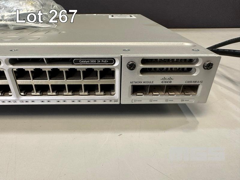 CISCO CATALYST 3850 24 PoE+ 24-PORT SWITCH, WS-C3850-24P-S V03 C3850-NM-4-1G NETWORK MODULE, 2 x PWR-C1-715WAC PSU (NO CABLES) S/N:FOC1821X0JL