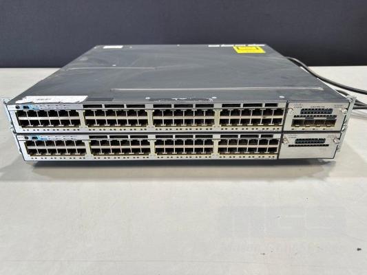 2 x CISCO CATALYST 3750-X SERIES 48-PORT SWITCHES, WS-C3750X-48P-S V01 WITH 1 x C3KX-NM-10G NETWORK MODULE & STACK CABLES S/N:FDO1452R0CB,FDO1503P0R8
