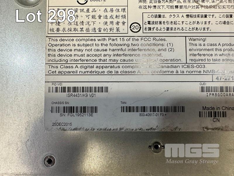 CISCO 4400 SERIES INTEGRATED SERVICES ROUTER, ISR4431/K9 V01 2 x PSU (NO CABLES) (NOTE: 1 x PSU FAULTY) S/N:FGL1952113E