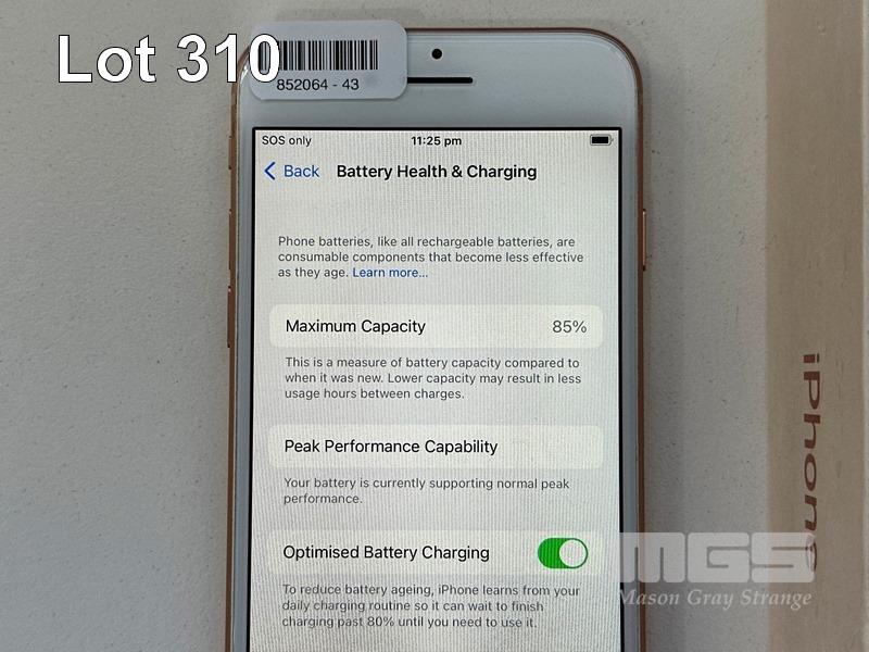 APPLE iPHONE 8, 256GB, GOLD, MODEL MQ7H2X/A, BATTERY HEALTH 85% (NO CABLE, NO CHARGER) S/N:C7CVHK9SJC6Q