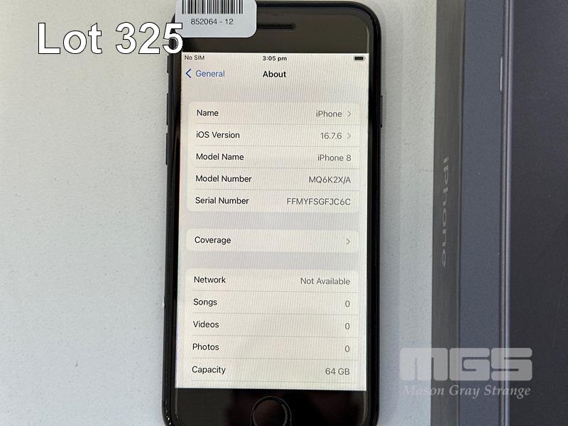 APPLE iPHONE 8, 64GB, SPACE GREY, MODEL MQ6K2X/A, BATTERY HEALTH 95% (NO CABLE, NO CHARGER) S/N:FFMYFSGFJC6C