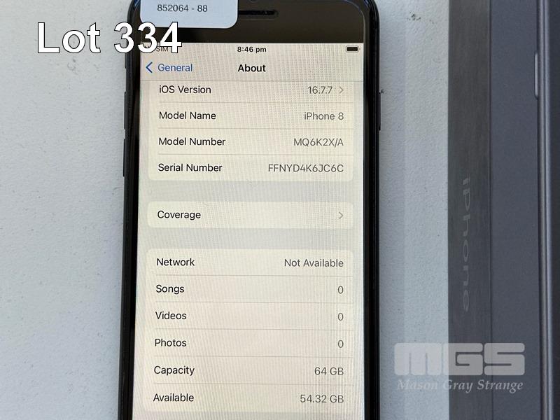 APPLE iPHONE 8, 64GB, SPACE GREY, MODEL MQ6K2X/A, BATTERY HEALTH 92% (NO CABLE, NO CHARGER) S/N:FFNYD4K6JC6C