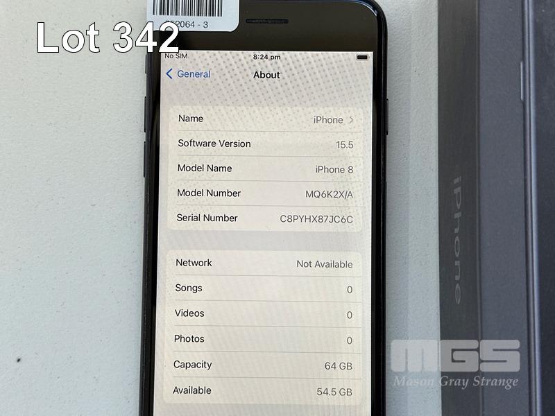 APPLE iPHONE 8, 64GB, SPACE GREY, MODEL MQ6K2X/A, BATTERY HEALTH 91% (NO CABLE, NO CHARGER) S/N:C8PYHX87JC6C