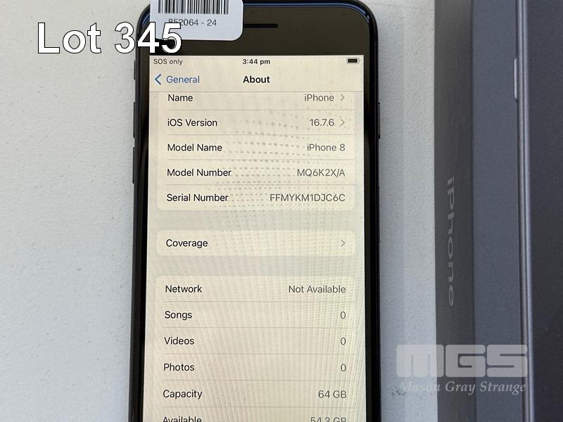 APPLE iPHONE 8, 64GB, SPACE GREY, MODEL MQ6K2X/A, BATTERY HEALTH 90% (NO CABLE, NO CHARGER) S/N:FFMYKM1DJC6C