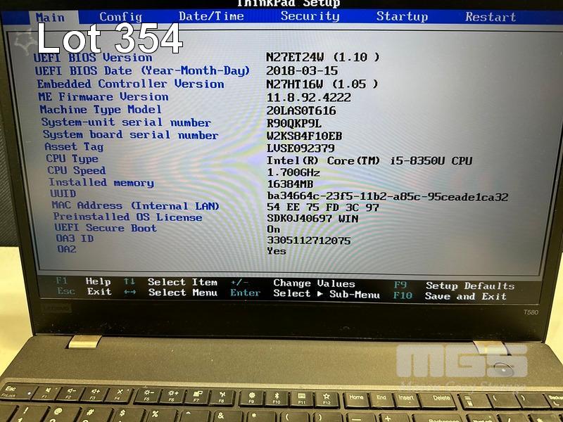 LAPTOP, LENOVO THINKPAD T580, TYPE 20LA, CORE i5 8350U (8TH GEN) @ 1.7GHz, 16GB DDR4 RAM, 256GB NVMe M.2 SSD, 15.6" WIDESCREEN (1920x1080), INTEL UHD GRAPHICS, Wi-Fi, BLUETOOTH, WINDOWS 11 PRO INSTALLED (NO USB-C POWER SUPPLY) (NOTE: MARKS ON SCREEN) S/N:R90QKP9L