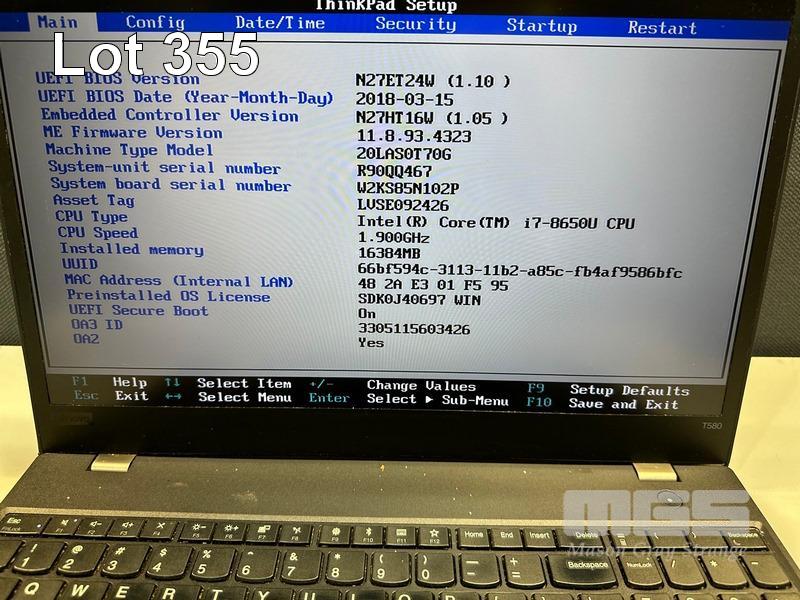 LAPTOP, LENOVO THINKPAD T580, TYPE 20LA, CORE i7 8650U (8TH GEN) @ 1.9GHz, 16GB DDR4 RAM, 512GB NVMe M.2 SSD, 15.6" WIDESCREEN (1920x1080), INTEL UHD GRAPHICS, Wi-Fi, BLUETOOTH, WINDOWS 11 PRO INSTALLED (NO USB-C POWER SUPPLY) (NOTE: DAMAGE TO CASING RHS, MARKS ON SCREEN) S/N:R90QQ467