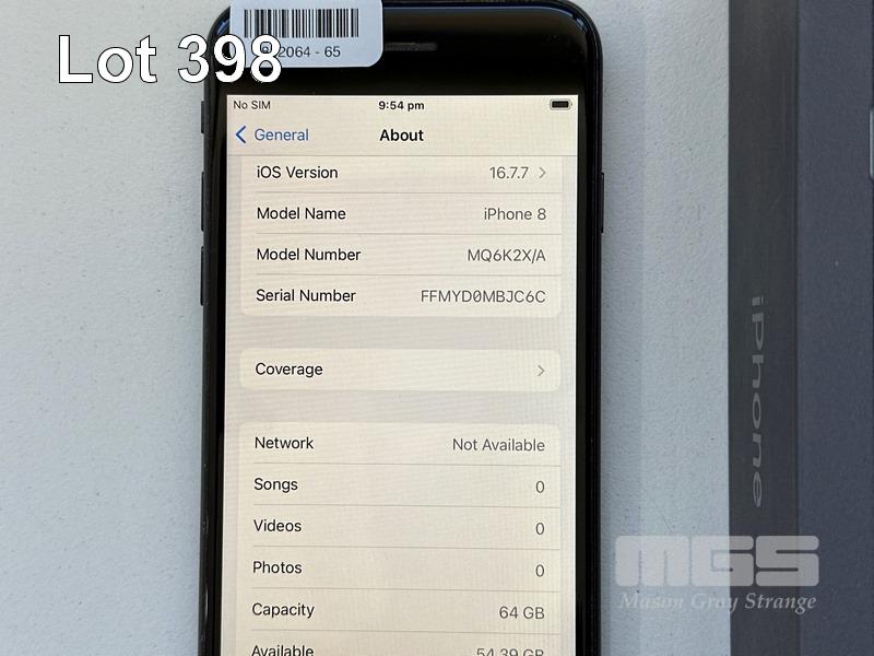 APPLE iPHONE 8, 64GB, SPACE GREY, MODEL MQ6K2X/A, BATTERY HEALTH 86% (NO CABLE, NO CHARGER) S/N:FFMYD0MBJC6C