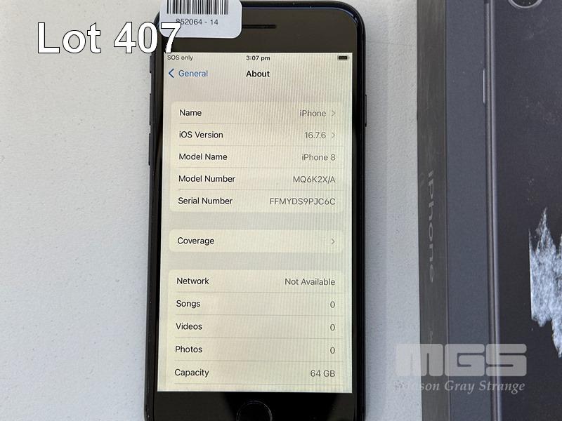 APPLE iPHONE 8, 64GB, SPACE GREY, MODEL MQ6K2X/A, BATTERY HEALTH 84%