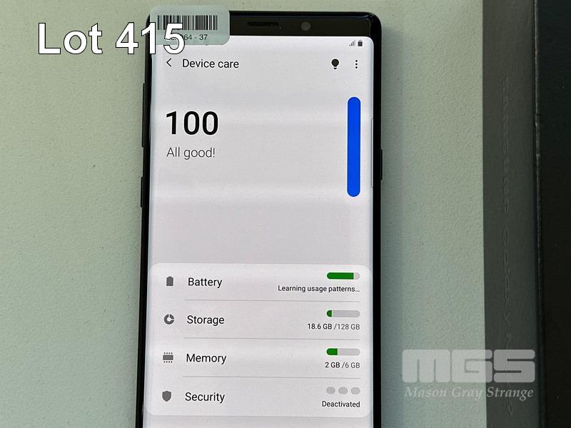 SAMSUNG GALAXY NOTE9 SMARTPHONE, 128GB, BLACK, MODEL SM-N960F (NO USB-C CABLE, NO CHARGER) S/N:R58K85DCPRE