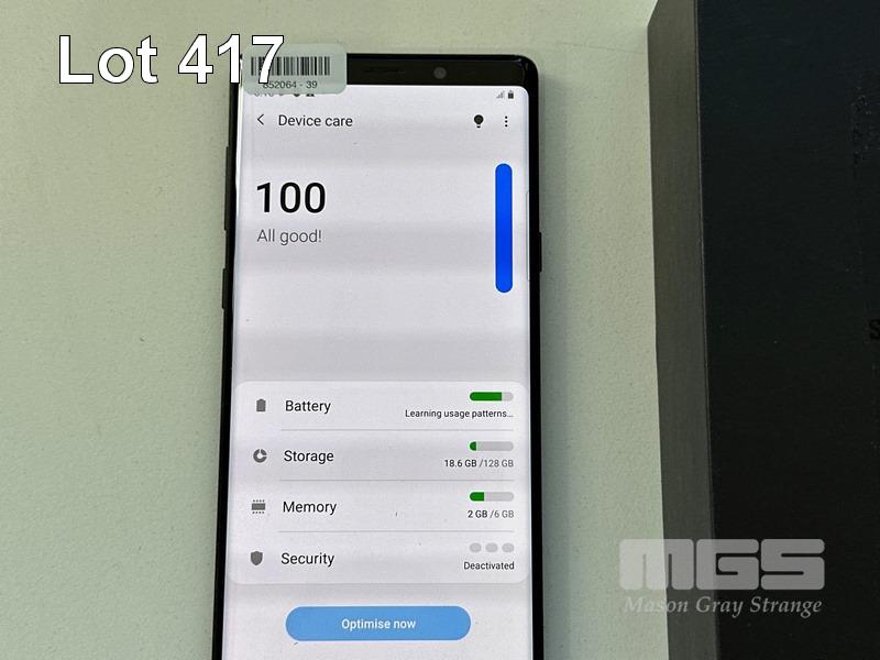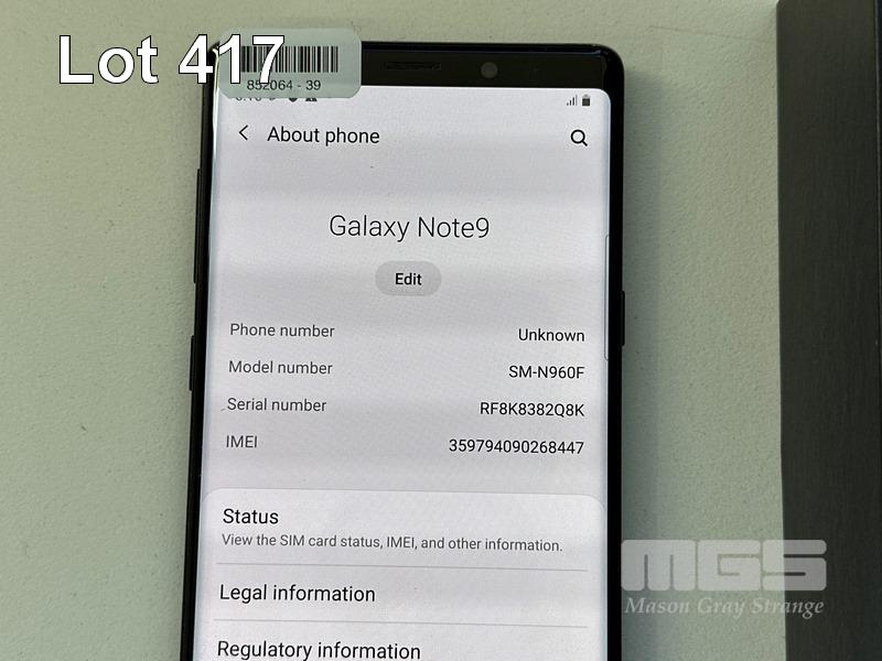 SAMSUNG GALAXY NOTE9 SMARTPHONE, 128GB, BLACK, MODEL SM-N960F (NO USB-C CABLE, NO CHARGER) S/N:RF8K8382Q8K
