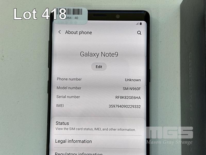 SAMSUNG GALAXY NOTE9 SMARTPHONE, 128GB, BLACK, MODEL SM-N960F (NO USB-C CABLE, NO CHARGER) S/N:RF8K82GE6HA