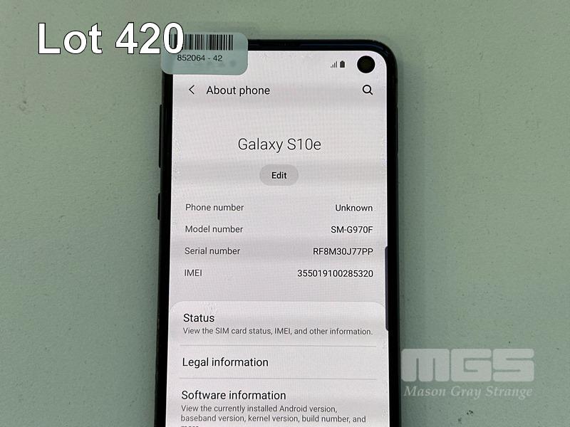SAMSUNG GALAXY S10e SMARTPHONE, 128GB, MODEL SM-G970F (NO USB-C CABLE, NO CHARGER) S/N:RF8M30J77PP