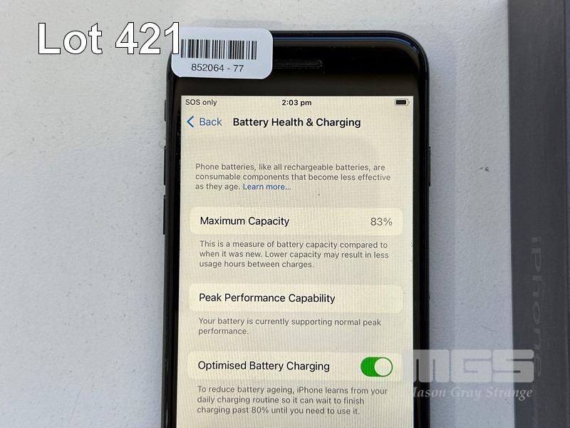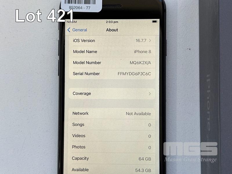 APPLE iPHONE 8, 64GB, SPACE GREY, MODEL MQ6K2X/A, BATTERY HEALTH 83% (NO CABLE, NO CHARGER) S/N:FFMYDG6PJC6C