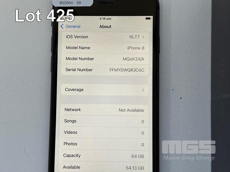 APPLE iPHONE 8, 64GB, SPACE GREY, MODEL MQ6K2X/A, BATTERY HEALTH 81% (NO CABLE, NO CHARGER) S/N:FFMYDWQRJC6C