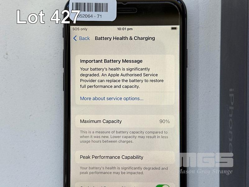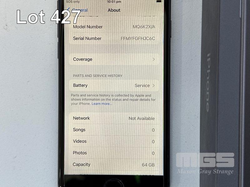 APPLE iPHONE 8, 64GB, SPACE GREY, MODEL MQ6K2X/A, BATTERY HEALTH 90% (NO CABLE, NO CHARGER) (NOTE: BATTERY SERVICE MESSAGE) S/N:FFMYFGFHJC6C