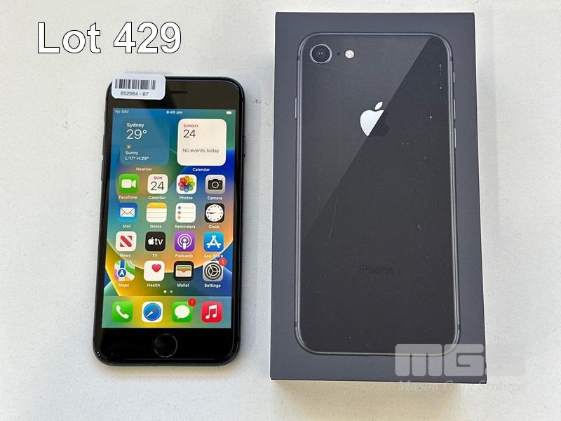 APPLE iPHONE 8, 64GB, SPACE GREY, MODEL MQ6K2X/A, BATTERY HEALTH 83% (NO CABLE, NO CHARGER) (NOTE: BATTERY SERVICE MESSAGE) S/N:FFMYDQGSJC6C
