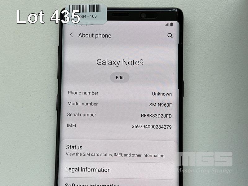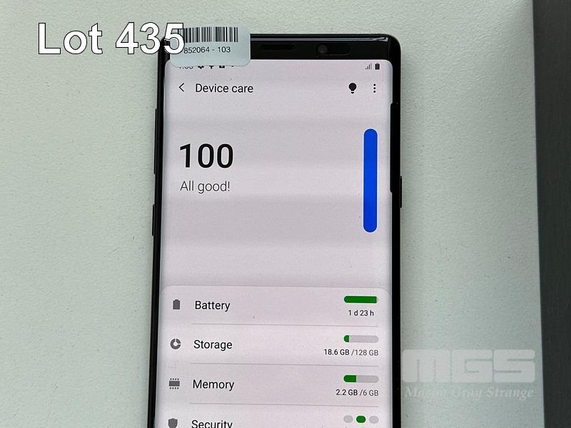 SAMSUNG GALAXY NOTE9 SMARTPHONE, 128GB, BLACK, MODEL SM-N960F (NO USB-C CABLE, NO CHARGER) (NOTE: DAMAGE TO REAR CASING) S/N:RF8K83D2JFD