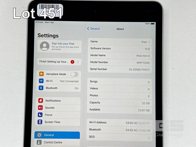 APPLE iPAD MINI 4, 32GB, Wi-Fi, SPACE GREY, MODEL MNY12X/A