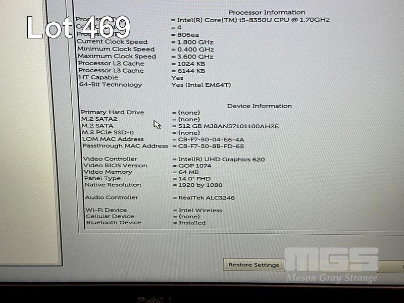 LAPTOP, DELL LATITUDE 5490, CORE i5 8350U (8TH GEN) @ 1.7GHz, 8GB DDR4 RAM, 512GB M.2 SSD, 14" WIDESCREEN (1920x1080), INTEL UHD GRAPHICS 620, Wi-Fi, BLUETOOTH, WINDOWS 11 HOME INSTALLED & POWER SUPPLY S/N:9P3G7S2
