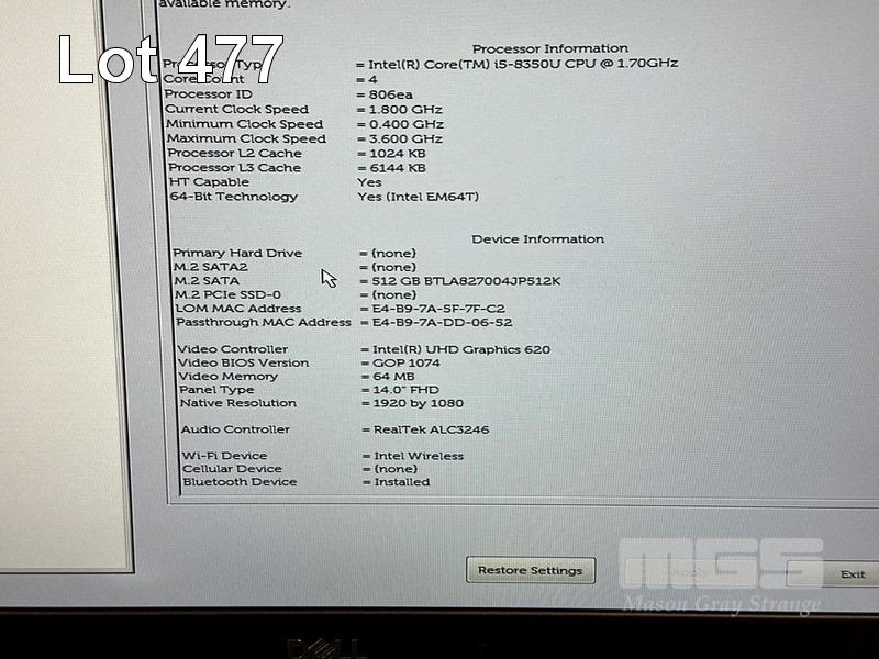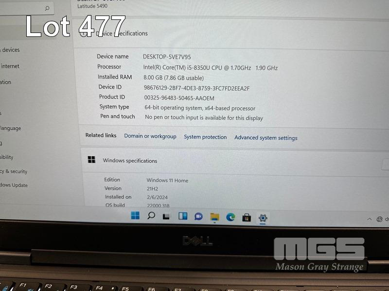 LAPTOP, DELL LATITUDE 5490, CORE i5 8350U (8TH GEN) @ 1.7GHz, 8GB DDR4 RAM, 512GB M.2 SSD, 14" WIDESCREEN (1920x1080), INTEL UHD GRAPHICS 620, Wi-Fi, BLUETOOTH, WINDOWS 11 HOME INSTALLED & POWER SUPPLY (NOTE: MARKS ON SCREEN) S/N:BGP5KR2