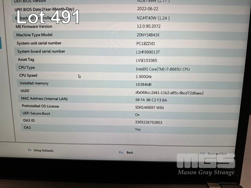 LAPTOP, LENOVO THINKPAD T490s, TYPE 20NY, CORE i7 8665U (8TH GEN) @ 1.9GHz, 16GB DDR4 RAM, 512GB NVMe M.2 SSD, 14" TOUCHSCREEN (1920x1080), INTEL HD VIDEO, Wi-Fi, BLUETOOTH, WINDOWS 11 PRO INSTALLED (NO USB-C POWER SUPPLY) (NOTE: SCRATCHES ON CASING, MARKS ON SCREEN) S/N:PC18ZZVD