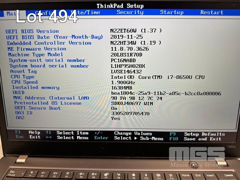 LAPTOP, LENOVO THINKPAD T480s, TYPE 20L8, CORE i7 8650U (8TH GEN) @ 1.9GHz, 16GB DDR4 RAM, 512GB NVMe M.2 SSD, 14" TOUCHSCREEN (1920x1080), INTEL HD VIDEO, Wi-Fi, BLUETOOTH, WINDOWS 11 PRO INSTALLED (NO USB-C POWER SUPPLY) (NOTE: DAMAGE TO CASING, MARKS ON SCREEN) S/N:PC16NABD