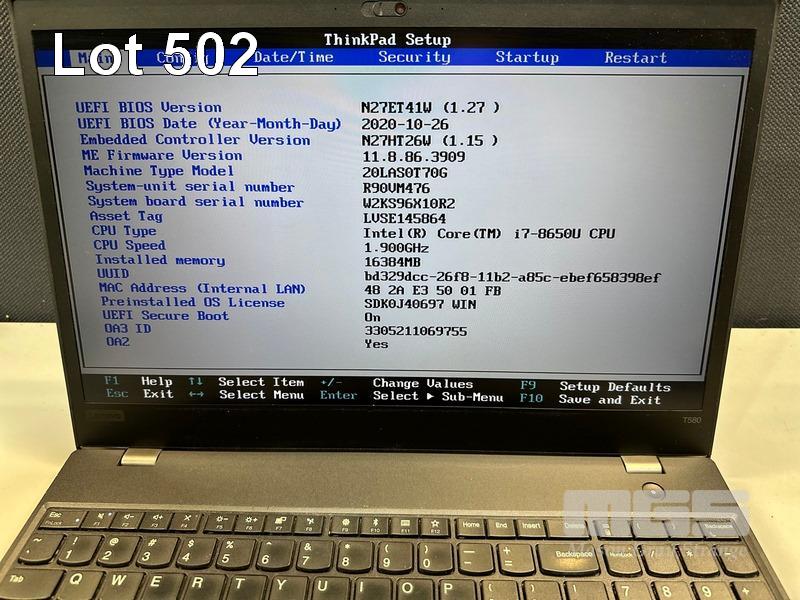 LAPTOP, LENOVO THINKPAD T580, TYPE 20LA, CORE i7 8650U (8TH GEN) @ 1.9GHz, 16GB DDR4 RAM, 512GB NVMe M.2 SSD, 15.6" WIDESCREEN (1920x1080), INTEL UHD GRAPHICS, Wi-Fi, BLUETOOTH, WINDOWS 11 PRO INSTALLED (NO USB-C POWER SUPPLY) (NOTE: MARKS ON SCREEN) S/N:R90VM476