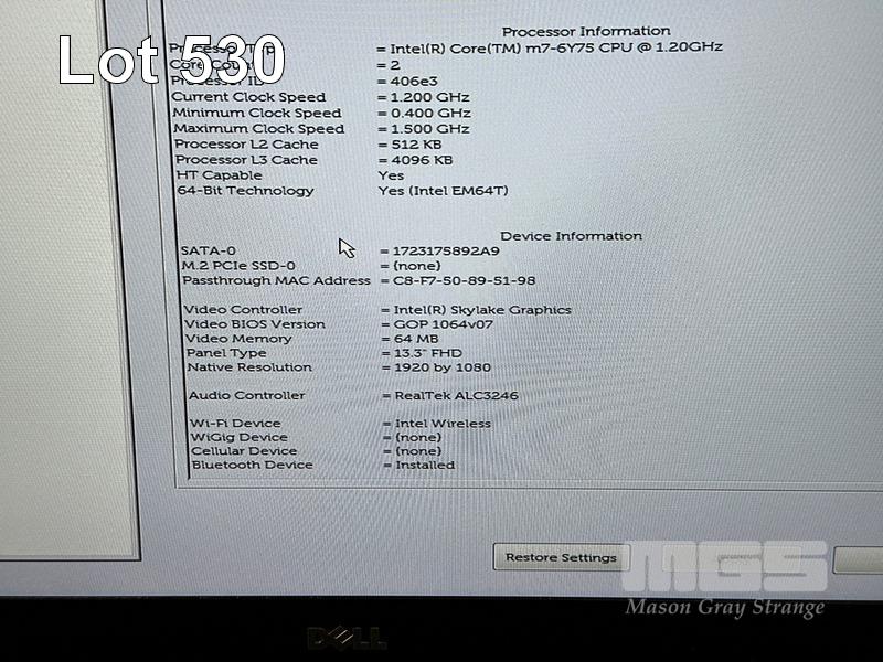 LAPTOP, DELL LATITUDE 7370, CORE m7-6Y75 (6TH GEN) @ 1.2GHz, 16GB DDR3 RAM, 512GB M.2 SSD, 13.3" WIDESCREEN (1920x1080), INTEL HD GRAPHICS 515, Wi-Fi, BLUETOOTH, WINDOWS 10 PRO INSTALLED (NO USB-C POWER SUPPLY) S/N:87MT5H2