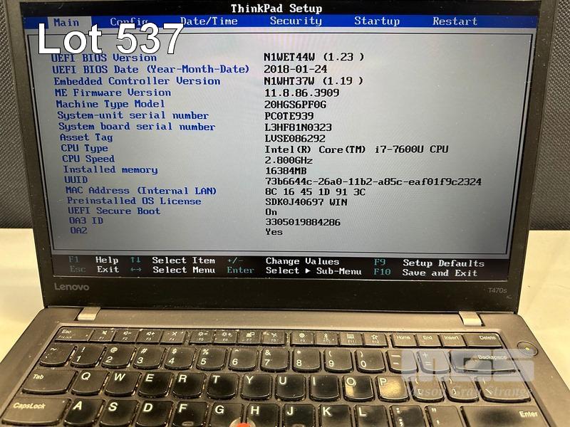 LAPTOP, LENOVO THINKPAD T470s, TYPE 20HG, CORE i7 7600U (7TH GEN) @ 2.8GHz, 16GB DDR4 RAM, 512GB NVMe M.2 SSD, 14" TOUCHSCREEN (1920x1080), INTEL HD VIDEO, Wi-Fi, BLUETOOTH, WINDOWS 10 PRO INSTALLED & POWER SUPPLY (NOTE: MARKS ON SCREEN) S/N:PC0TE939