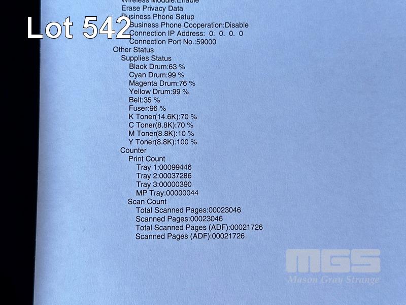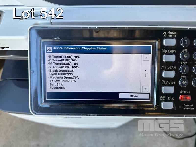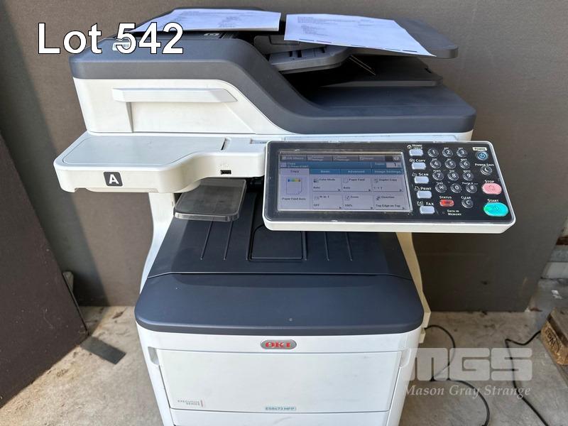 PRINTER, OKI EXECUTIVE SERIES ES8473 MFP COLOUR A3 MULTIFUNCTION LASER, ADF, USB, NETWORK, 155,303 COLOUR & 21,505 B&W PAGES (TEST PAGE ATTACHED) WITH 2ND/3RD TRAY ON CASTORS S/N:AL92004465